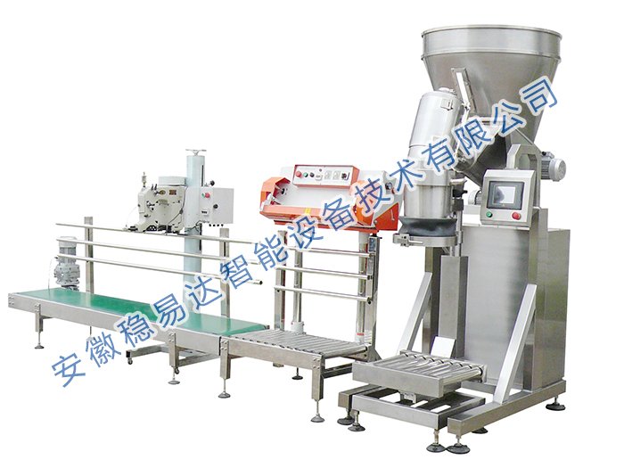 WYD-F系列粉剂包装机是机电一体化的高新技术产品, 适用于制药、化工、肥料、面粉等行业中粉剂、小颗粒物料的自动计量,通常应用于包装规定在5~50kg的半自动包装线。使用塑料编制袋,人工套袋,自动夹袋、计量、充填、落袋、输送,人工辅助入缝合工位自动缝口,完成半自动包装过程。